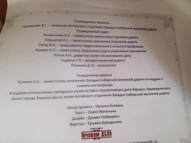 Мы нашли и сохранили архив Алтайской железной дороги, тогда это было под руководством и поддержкой начальника отделения Виктора Голомолзина, сегодня он начальник Октябрьской железной дороги.